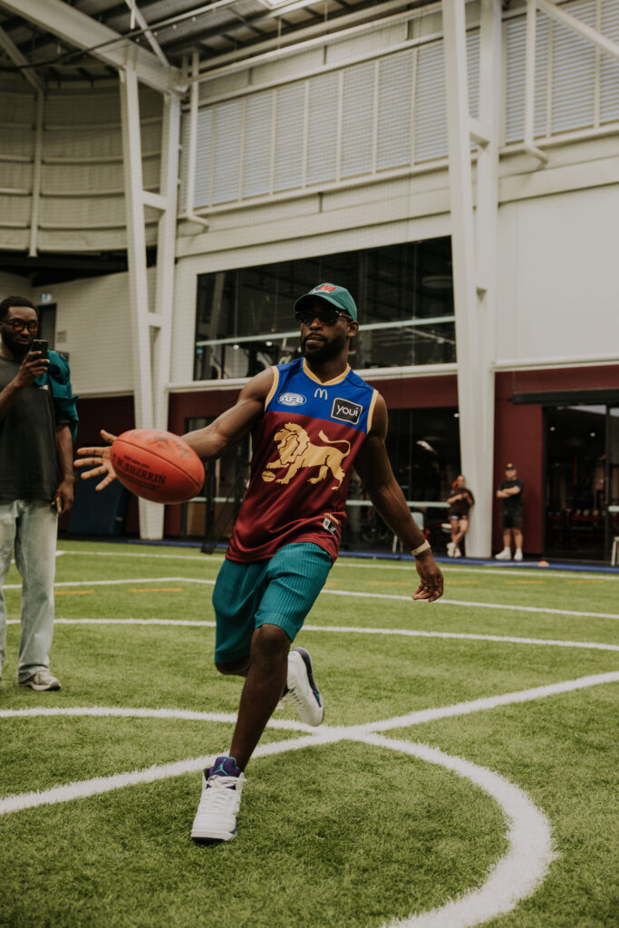 British rapper and style icon Tinie Tempah took some time out in Brisbane today to hang out with the Brisbane Lions, ahead of his highly anticipated performance at Fridayz Live tomorrow night.